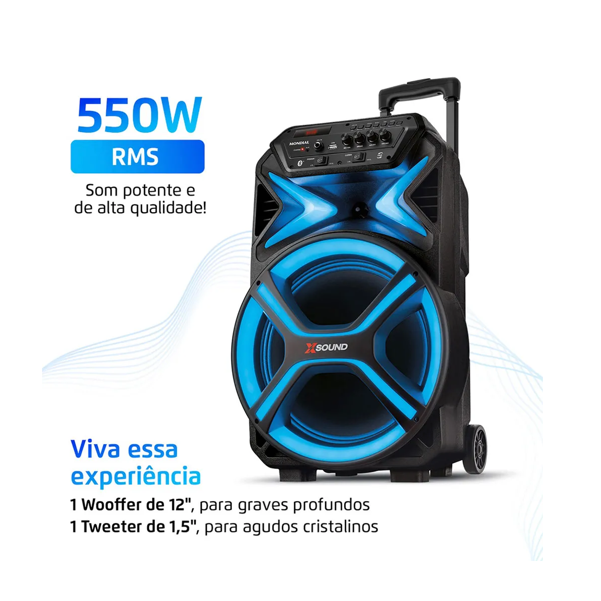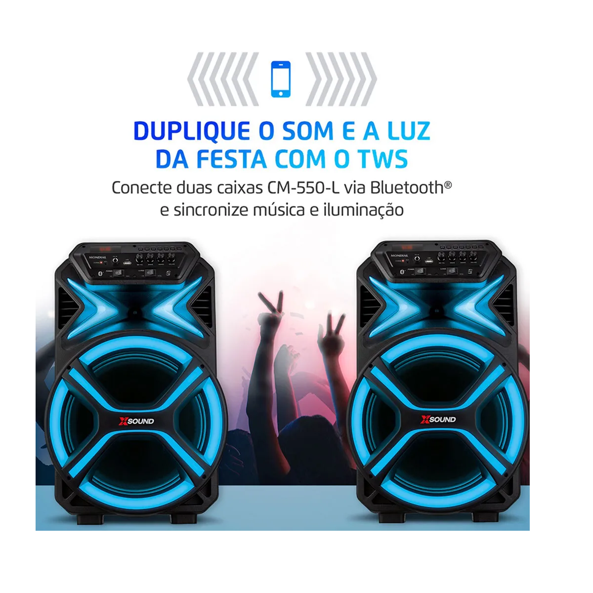 A Mondial CM-550-L é a caixa perfeita para transformar qualquer lugar em uma festa. Com 550W RMS de potência e sistema de som de 2 vias, entrega graves fortes e agudos nítidos.