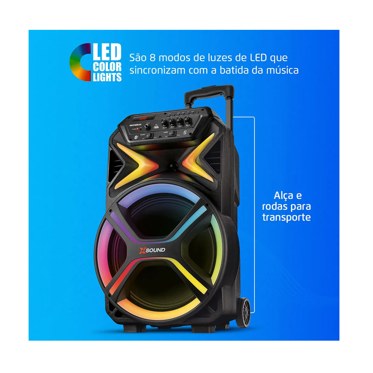 Possui Bluetooth 5.3 para conexão rápida, Função TWS para dobrar o som e Led Color Lights que acompanham o ritmo da música Leve e prática, conta com até 12h de bateria, rádio FM, entrada auxiliar e microfone Controle tudo pelo aplicativo Mondial e aproveite cada momento com muito mais intensidade